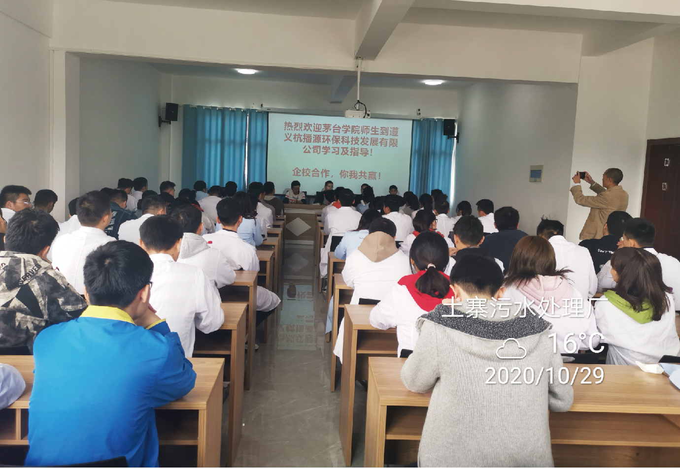 全体师生与遵义杭播源环保科技发展有限公司有关领导对本次学术交流进行合影纪念。