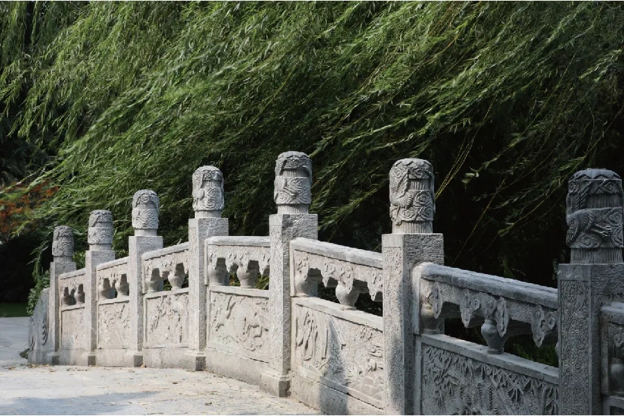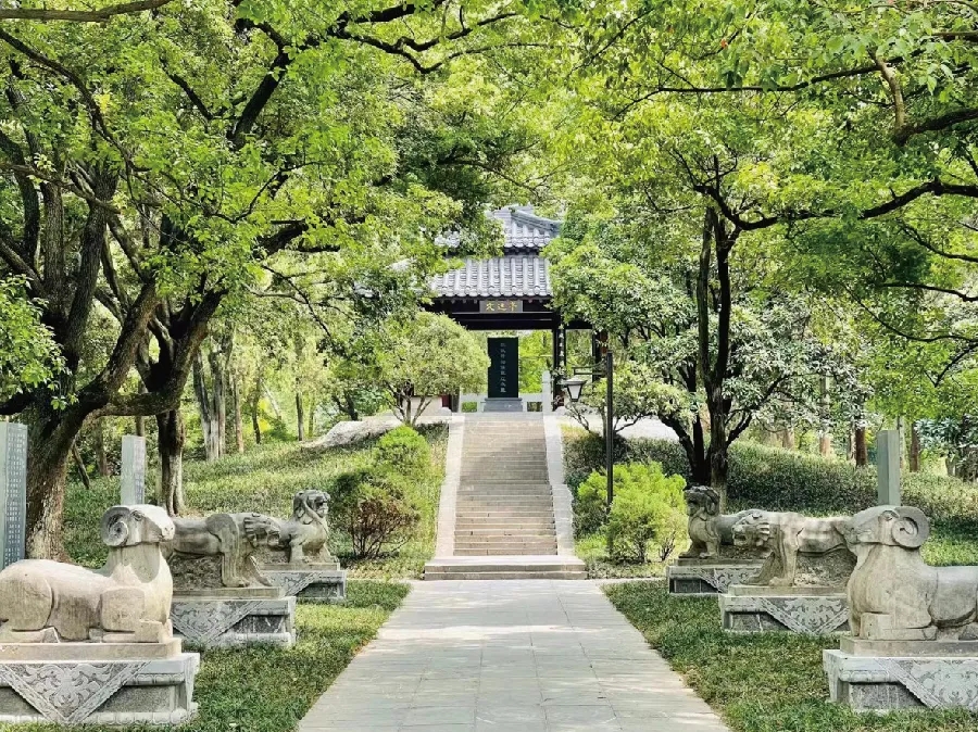 在公园西园,张辽衣冠冢神道的神兽后,竖立了数块石碑。传统碑刻集中展示了建安文学代表人物曹操、曹丕、曹植的诗赋,重现雄健深沉、慷慨悲凉的建安风骨。