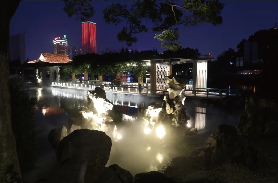此外,逍遥湖渡津桥北侧的湖面上,新增了音乐喷泉。7月1日起,每日17:00至17:30定时“绽放”,华彩非凡。