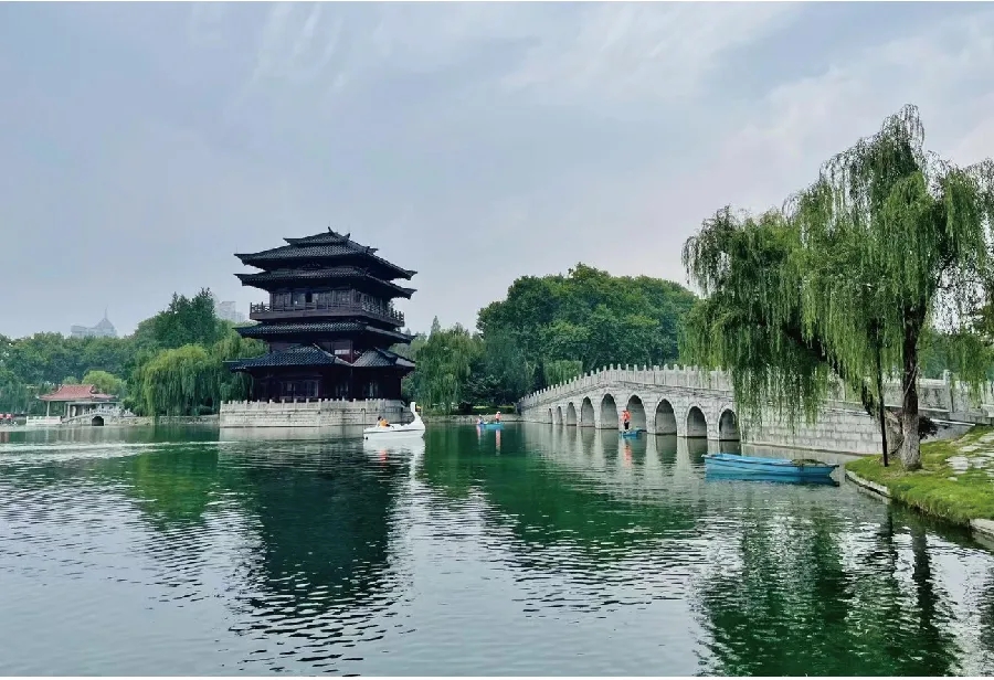 依托水系改造、水生态修复,逍遥津公园还建设了生态湿地观赏区,对邻水的牡丹亭、报春亭、梅花山、樱花园、杜鹃园、水榭等风光各异的景点均进行保护性改造和修缮。