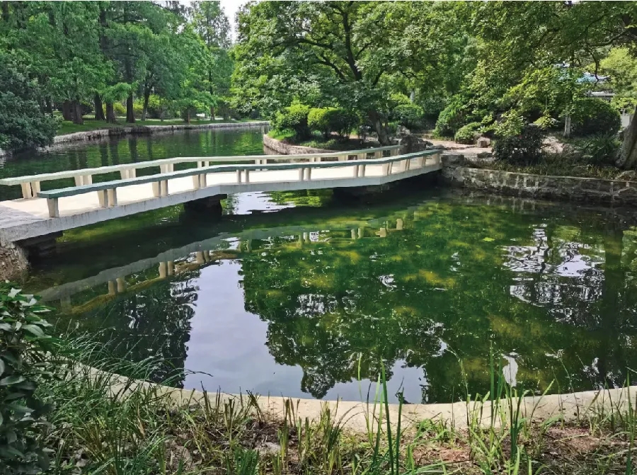 本次提升改造实施过程中,对全园乔木进行全面梳理,对古树名木进行“一对一”的挂牌、裹杆保护,对大乔木进行修剪整形,对一些倒伏、倾斜的乔木进行换植,对高、中、低搭配不合理的林相进行调整,使树木布局更加合理、疏朗有致。目前,逍遥津公园绿地率与绿化覆盖率分别为84.79%和90.73%,挂牌保护的古树名木16处40余株,陆地植物200余种2万余棵。
