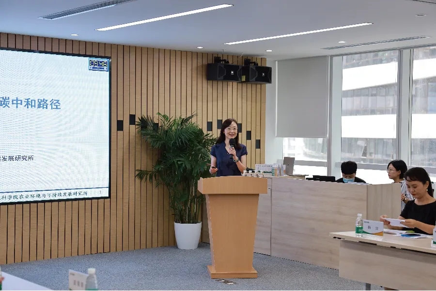 赵立欣所长对农业农村领域的“碳达峰、碳中和”存在问题与解决路径进行了分享。她指出,在保障国家粮食安全、保护生态环境、提升农村居民生活水平等前提下,实现农业农村领域碳达峰、碳中和任务重、压力大。同时,在农业农村领域减排固碳既是碳达峰、碳中和的重要举措,也是潜力所在。赵立欣提出了降低强度、提高固碳、可再生能源抵扣等方面若干条具体的碳达峰、碳中和路径,还对农业农村领域的双碳工作提出了若干建议。