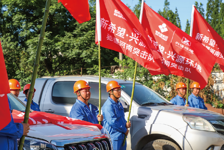 图:华体app注册入口环境驰援河南抢险救灾出征现场
