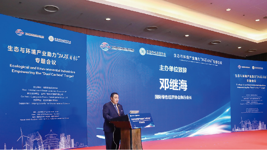 国际绿色经济协会执行会长邓继海在致辞中表示,“十四五”时期,以持续改善生态环境质量为核心,期待共同探讨生态与环境产业如何在双碳的使命与挑战下,推动开展技术创新、模式创新,助力双碳目标的实现。