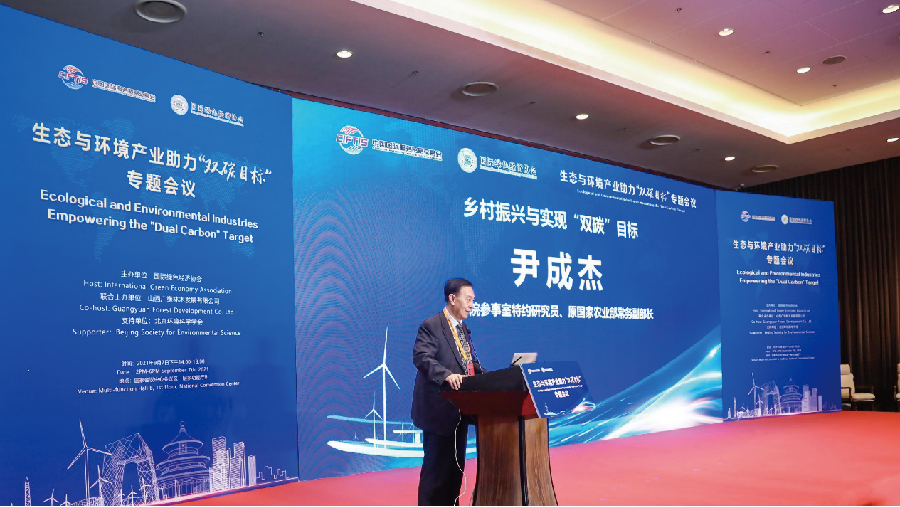 国务院参事室特约研究员、原国家农业部常务副部长尹成杰对乡村振兴与实现双碳目标的关系和路径作了分享。尹成杰认为双碳目标既是严峻的挑战也是全新的机遇,乡村振兴要为双碳目标提供有力支撑,切实抓好实现农业农村现代化,把节能减排和资源再利用全面贯穿乡村振兴全过程,牢固树立绿水青山就是金山银山的理念。