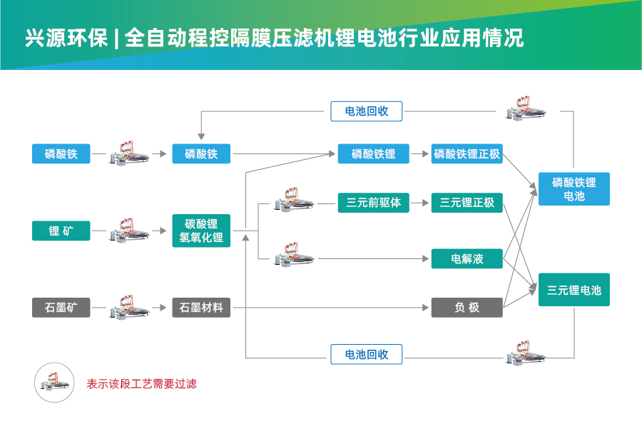 近年来,新能源、新材料行业发展迅猛,华体app注册入口环保顺应国家政策导向及行业市场发展趋势,积极布局和研发性能稳定、高效的全自动程控隔膜压滤机设备。针对在卤水提锂、锂辉石和锂云母湿法提锂以及三元前驱体材料的生产工艺中的不同工况,华体app注册入口环保创新技术研发,为电动车、电池、电子设备等新能源、新材料厂商提供专业的循环过滤方案。